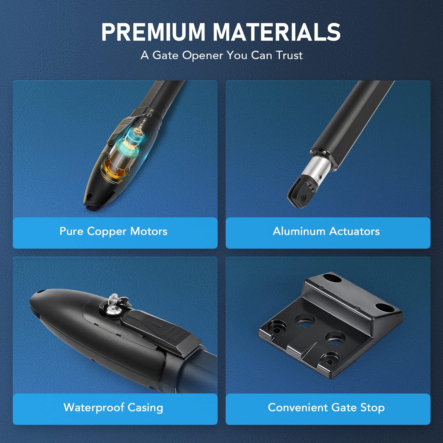 - Built to Withstand Any Weather: Our automatic gate opener is designed to resist rain, dust, and dirt with its solid construction and IP44 casing, and can withstand extreme weather conditions from -4 to 158°F.