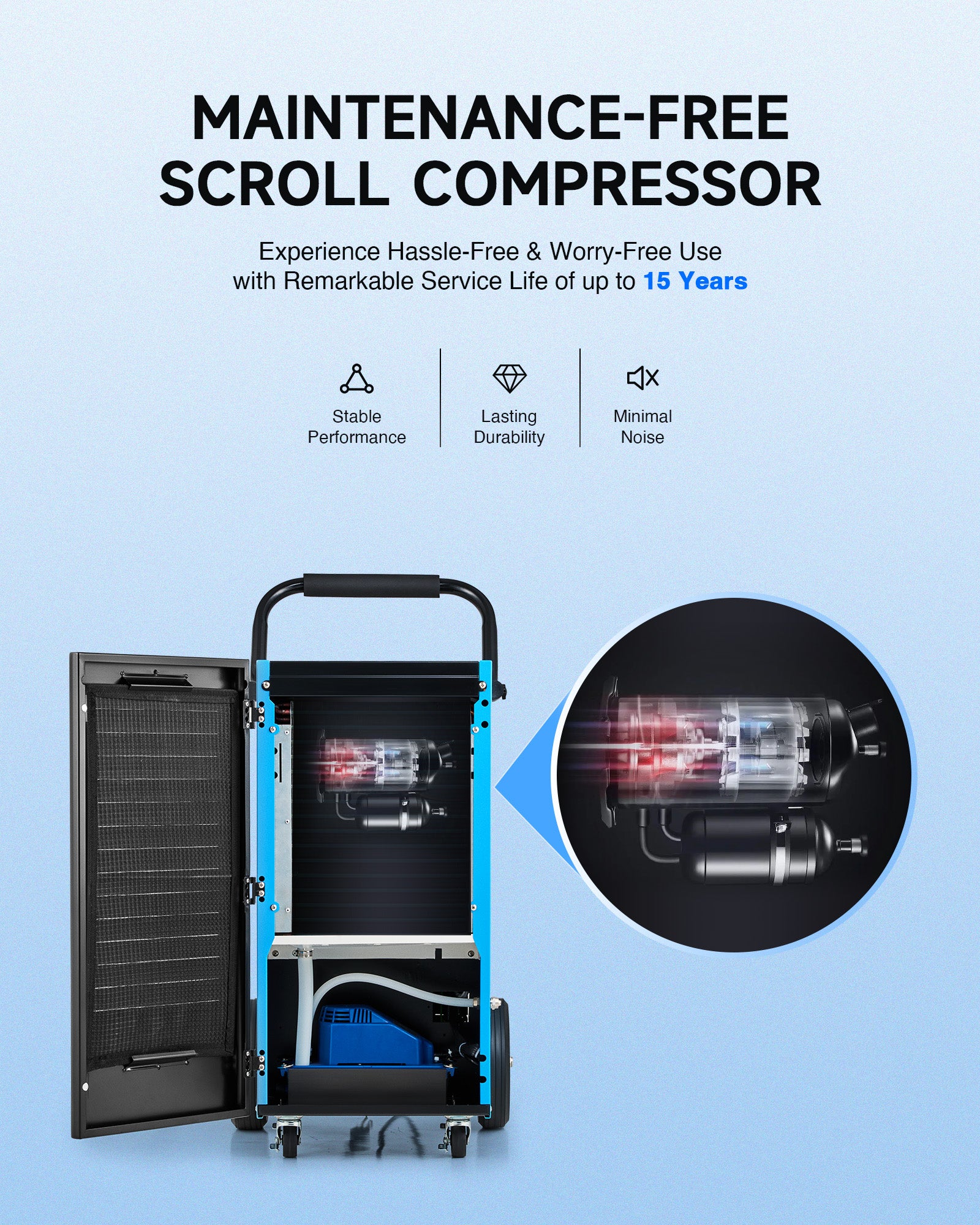 Say goodbye to frost build-up and maintenance headaches, as the auto-defrosting feature automatically halts the compressor when frost is detected, keeping your room dehumidifier running smoothly year-round.
