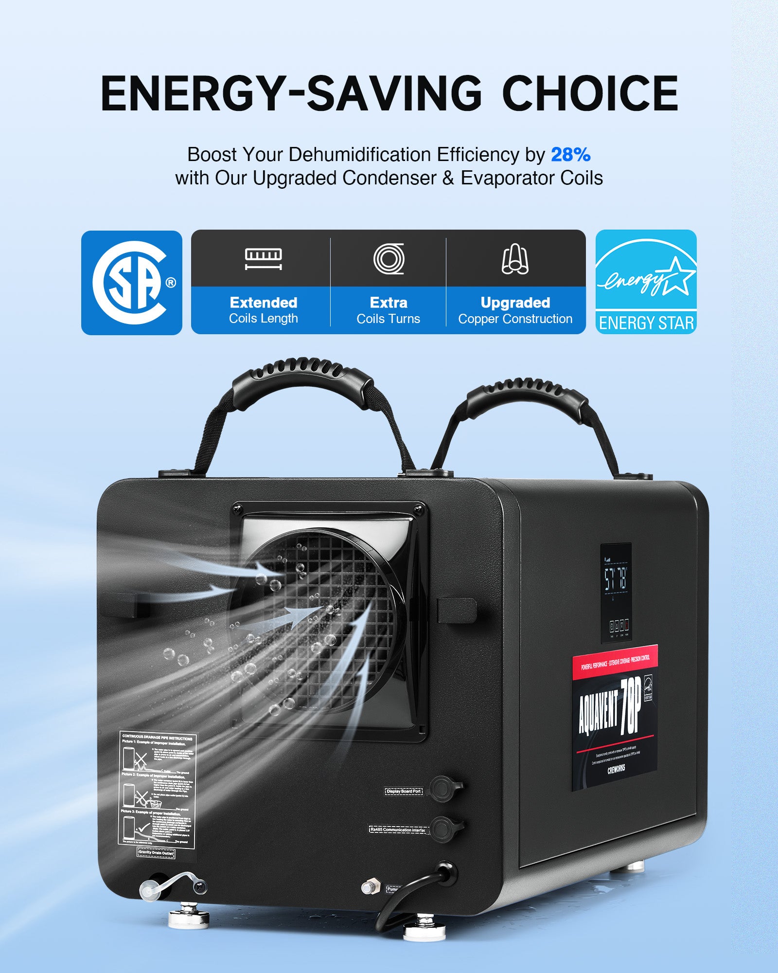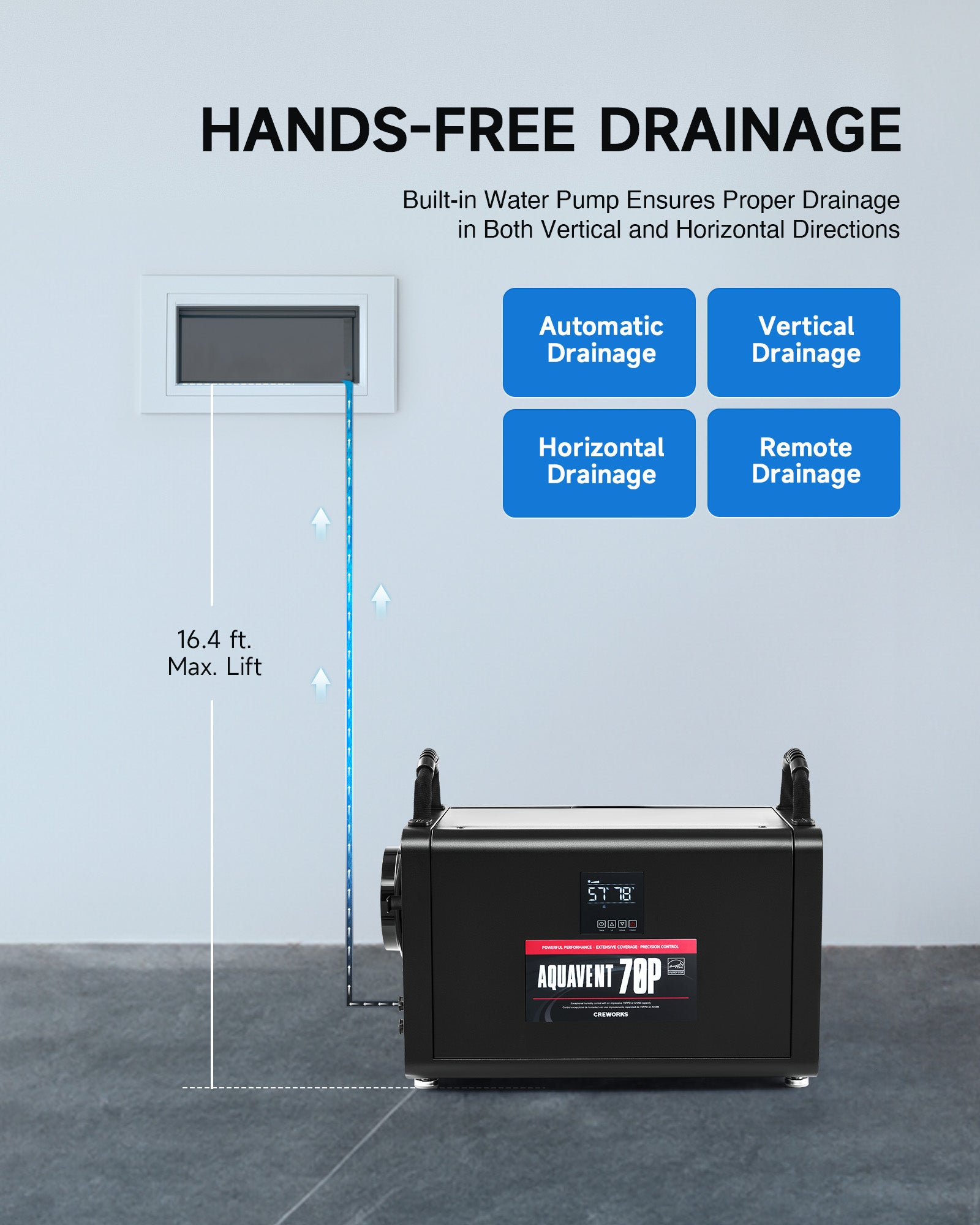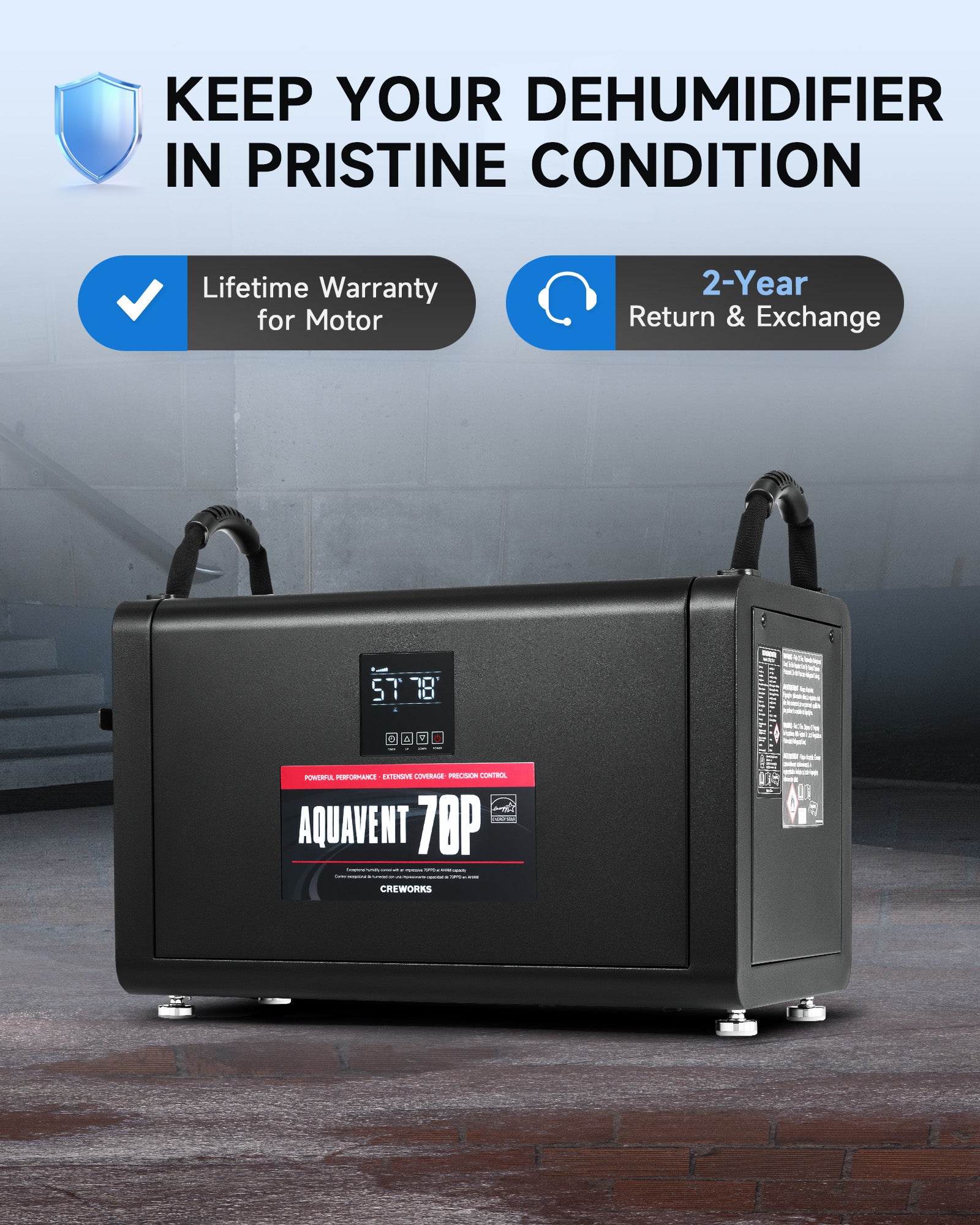- Powerful Dehumidification Capacity: Equipped with upgraded condenser and evaporator coils, our crawl space dehumidifier has the capability to remove 70 ppd at AHAM and 145 ppd at saturation, creating a drier space within hours