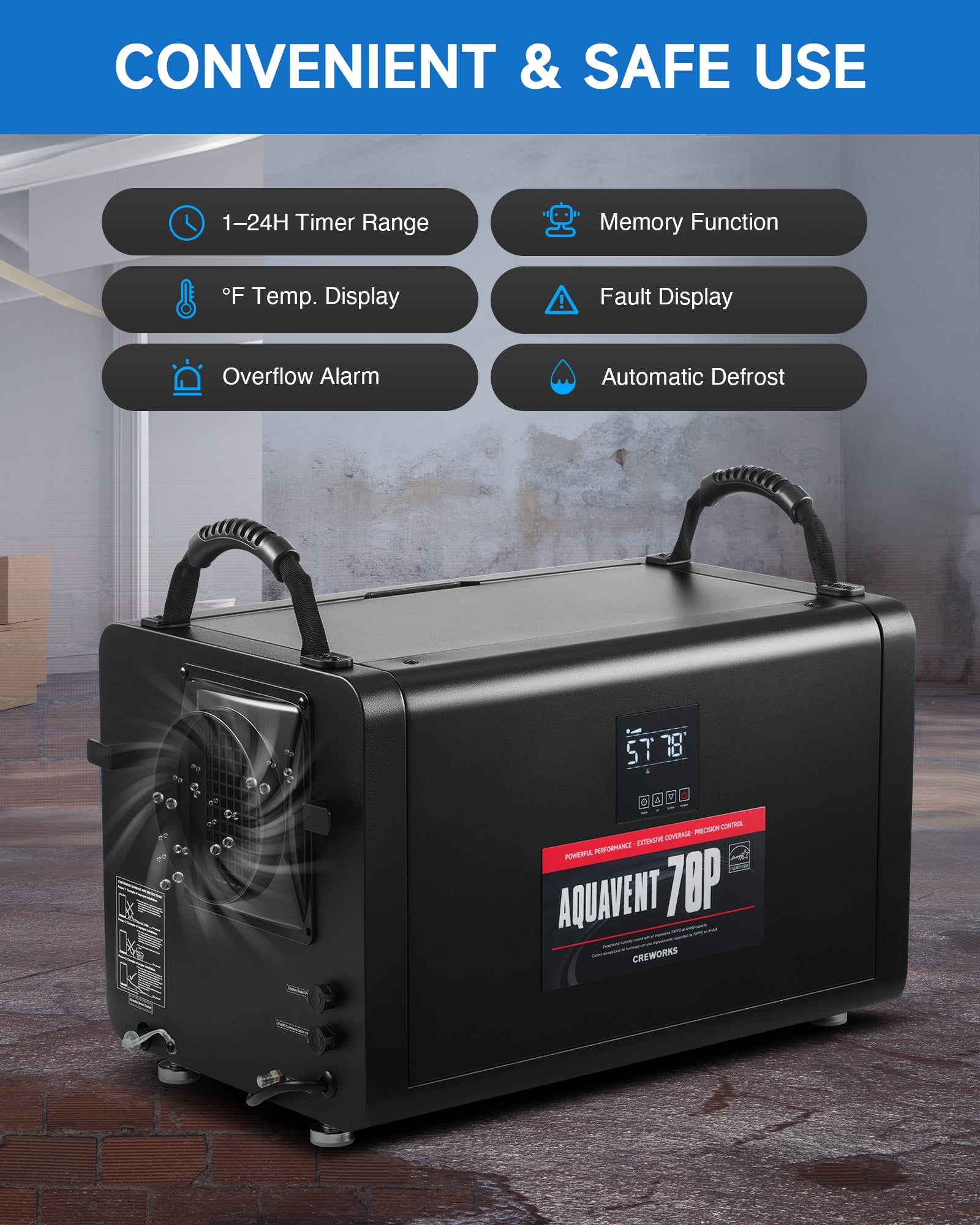 - Effective Dehumidification for Large Spaces: Effortlessly combat excess moisture and musty odors in large areas ranging from 800 to 2000 sq. ft. with this 145 ppd commercial dehumidifier by Creworks, ideal for crawl spaces, basements, garages, and more