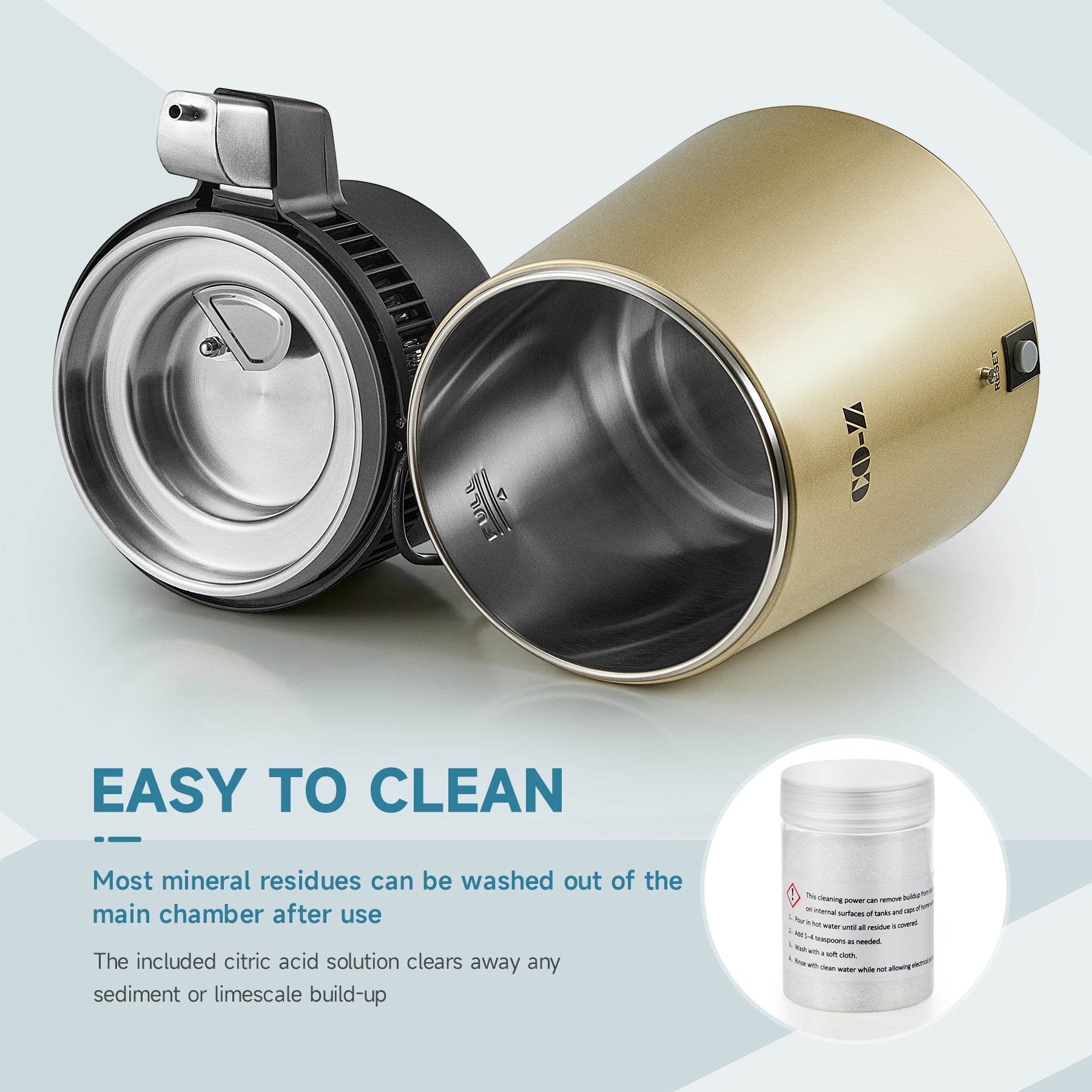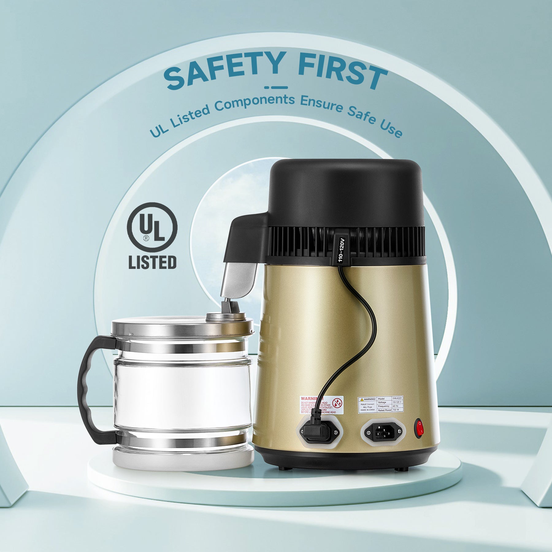 - SAFE OPERATION: This water distiller container is made of 304 stainless steel for long-lasting performance, and it automatically turns off when the temperature reaches 302 F to effectively prevent overheating