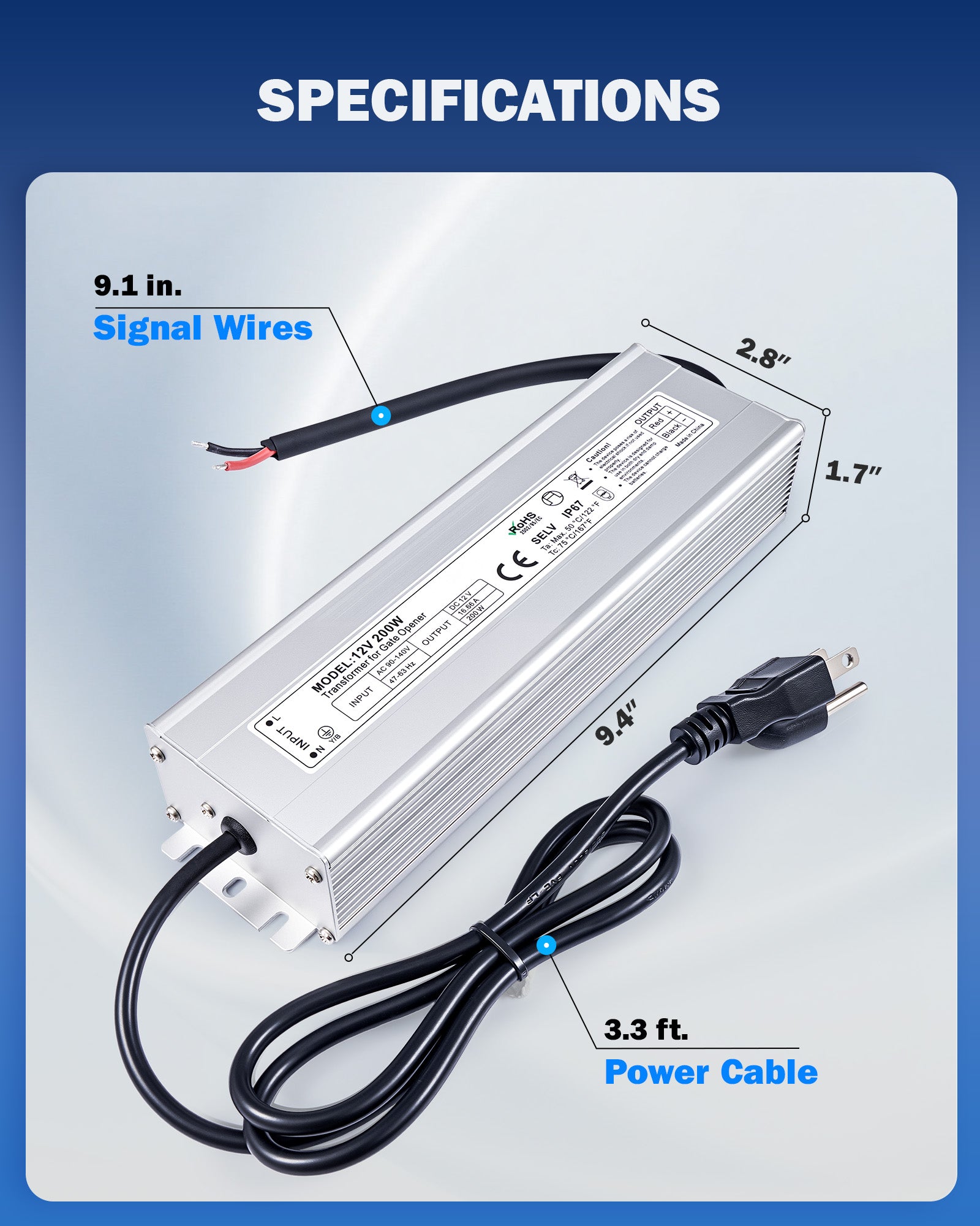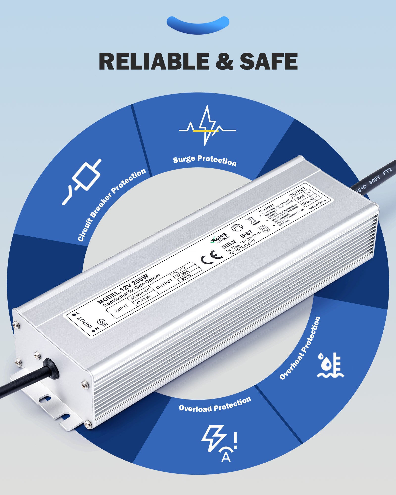 Enhanced Safety: Our 12V transformer comes equipped with multiple safety features that prevent damage from faults like short circuits, overload, and overheating, and automatically resets after issues are resolved