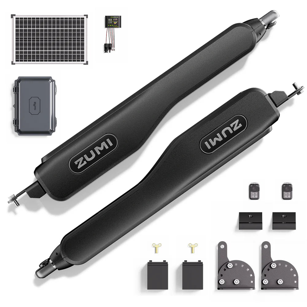 Zumi-Authorized WS2 Pro 1100 lb. Solar Heavy Dual Swing Gate Opener with Battery