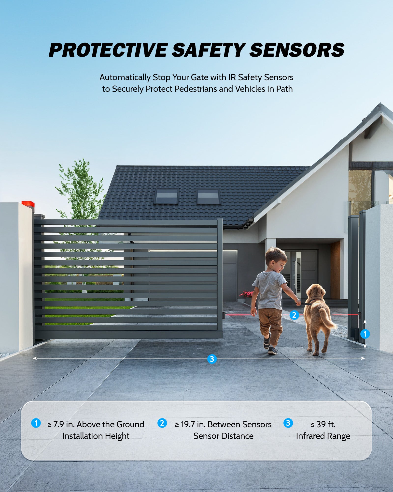 Auto-Stop for Optimal Safety: Keep your property and loved ones safe with the ZUMI infrared sensor kit. These gate sensors automatically stop your gate when they detect an obstacle, preventing accidents or damage.