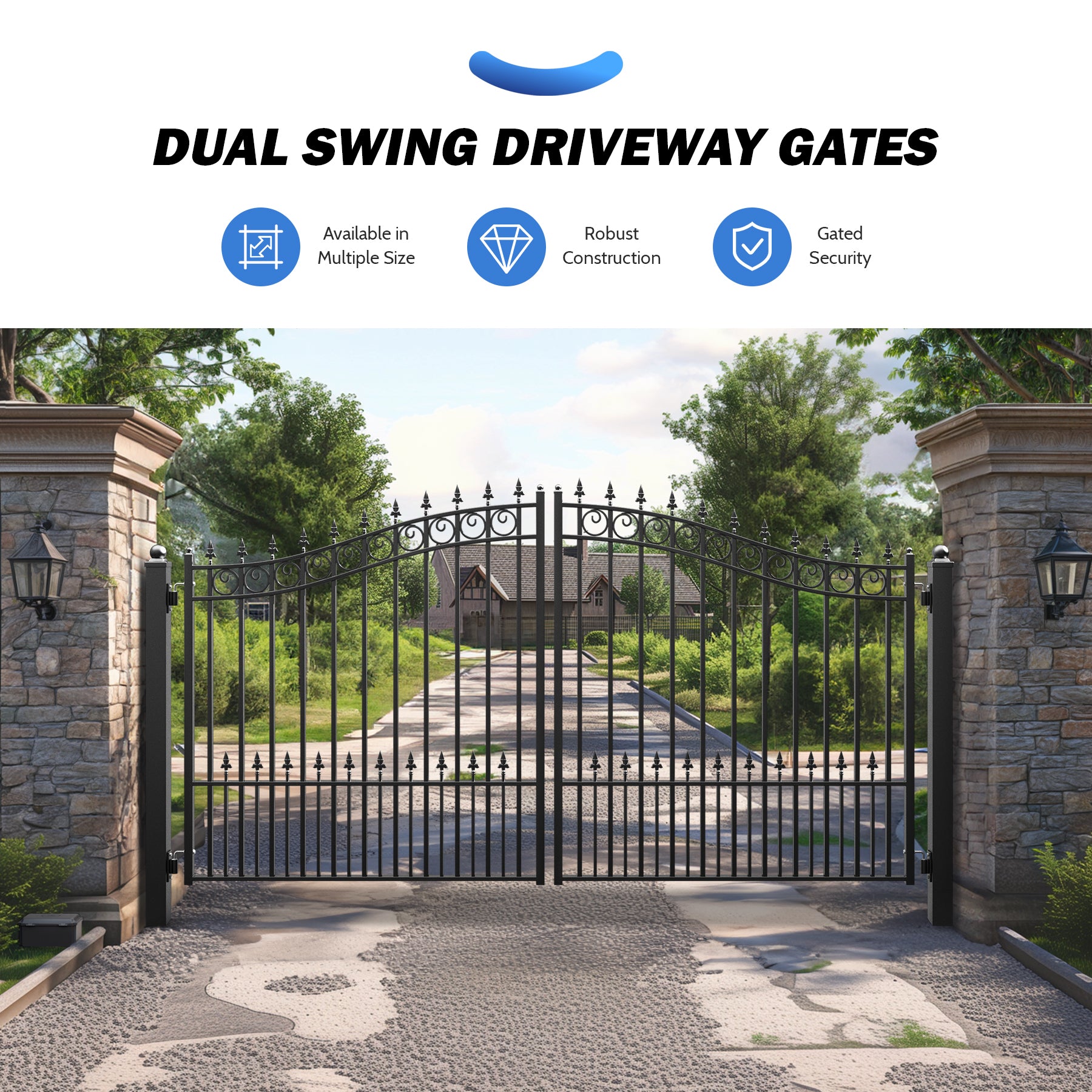 • Keep Your Loved Ones Safe: Zumi's dual swing driveway gates create a stunning entrance while securing your property, ensuring your children and pets are safe and your home remains inviting and well-protected