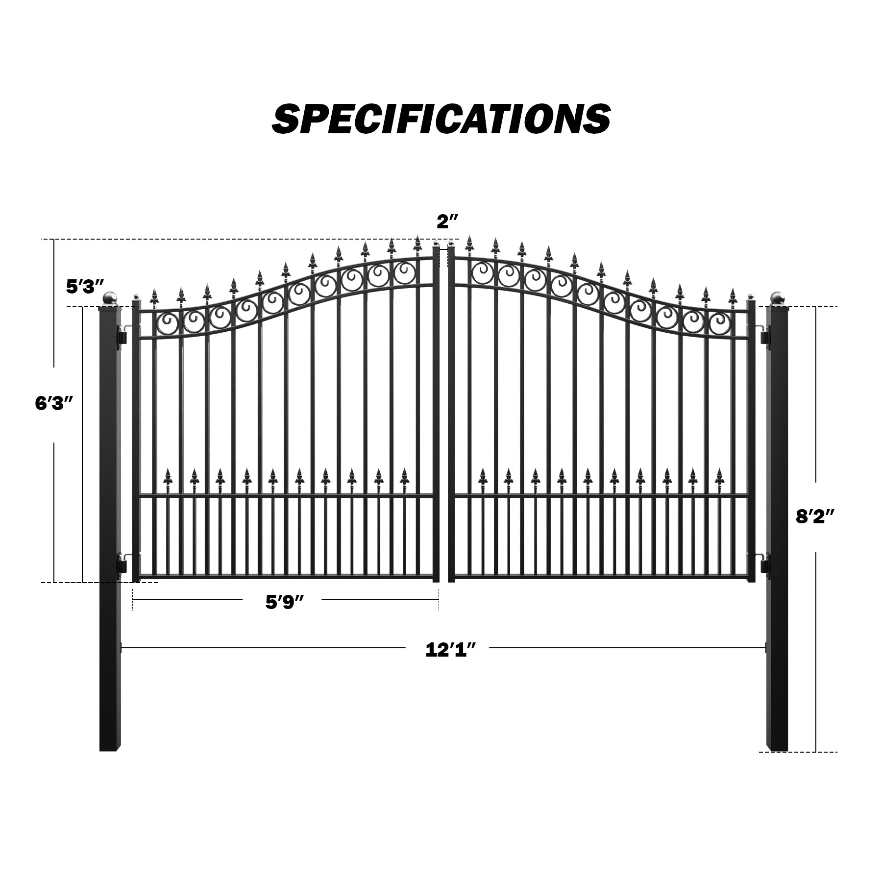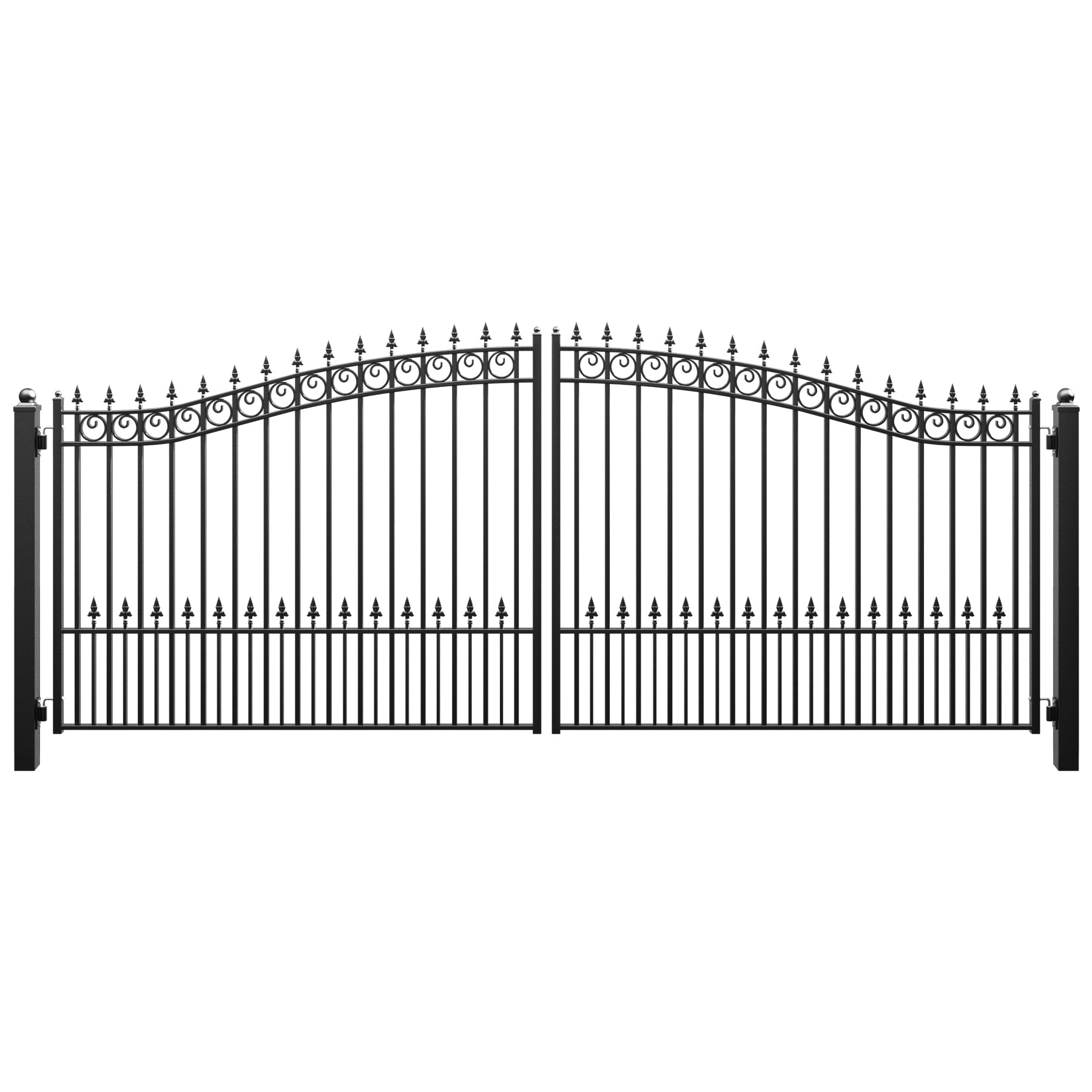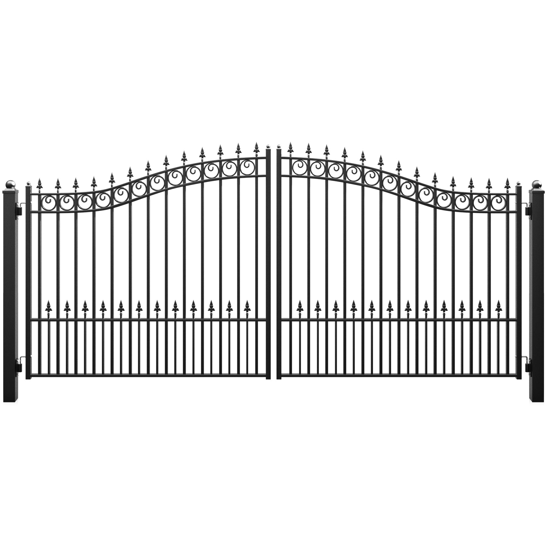 Give your property a stylish upgrade with Zumi's dual swing driveway gates. These swing gates don't just make a grand entrance—they also keep your kids and pets safe, blending elegance with security. Crafted from hot-dip galvanized steel with a corrosion-resistant coating, these iron gates are built to handle anything Mother Nature throws their way. These outdoor steel swing gates are a perfect match for Zumi's swing gate openers or any other model, making automation a breeze. Installation is a snap with pre-drilled holes, all the hardware you need, and easy-to-follow instructions. Boost your home's charm and value with these eye-catching driveway fence gates that provide both beauty and functionality!