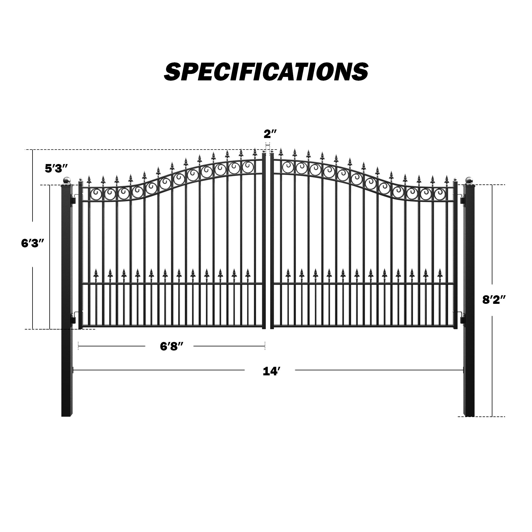 Gate Dimensions: 14 x 6.1 ft. (4.3x1.9 m)