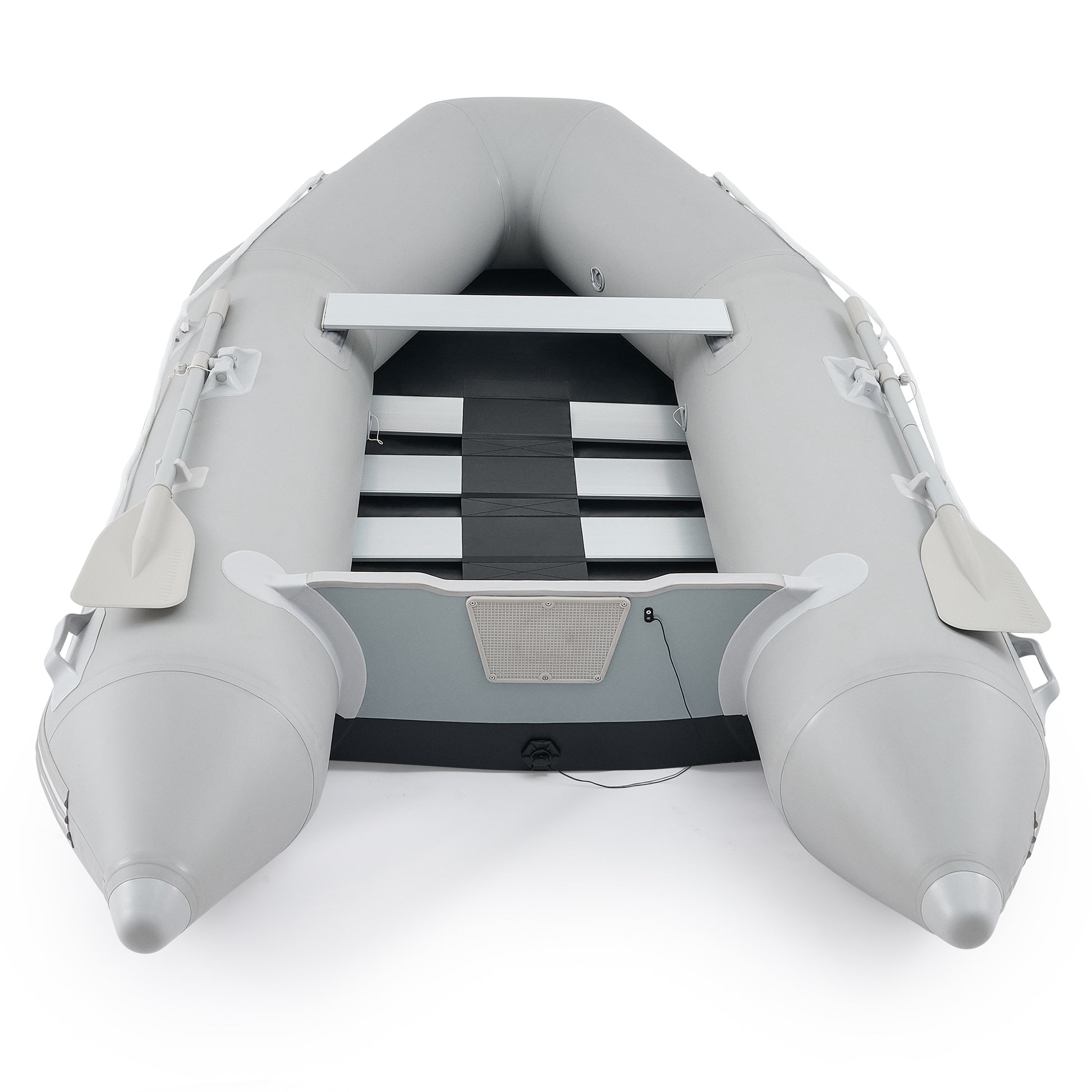 All Essentials Included: Our inflatable dinghy boat comes complete with a pair of aluminum oars, a foot pump, a carry bag, and a repair kit. Everything you need to quickly inflate the boat, smoothly navigate the water, and easily transport it is provided
